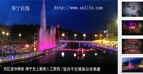 热烈祝贺我公司顺利承建寿宁东区湖中漂浮式音乐喷泉工程,该水景工程预计在2010年07月底建成,16套高喷均达到60米高度, 建成后将成为寿宁史上美丽人工景观。
