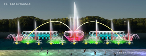 泸州新立-蓝波湾湖面漂浮式音乐喷泉工程由江苏千亿景观公司承建