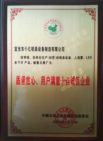 热烈祝贺我公司荣获“质量放心、用户满意十佳诚信企业”称号